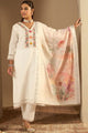 Off white and cream embroidered Kurta with Trousers with dupatta