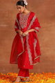 Red embroidered kurta with palazzos with dupatta
