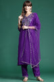 Dhiyona IE Floral Embroidered Regular Sequinned Kurta With Trousers & Dupatta