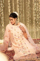 Peach-coloured, red and purple embroidered Kurta with Trousers & dupatta