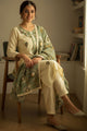 Cream, white and green embroidered Kurta with Trousers and dupatta