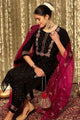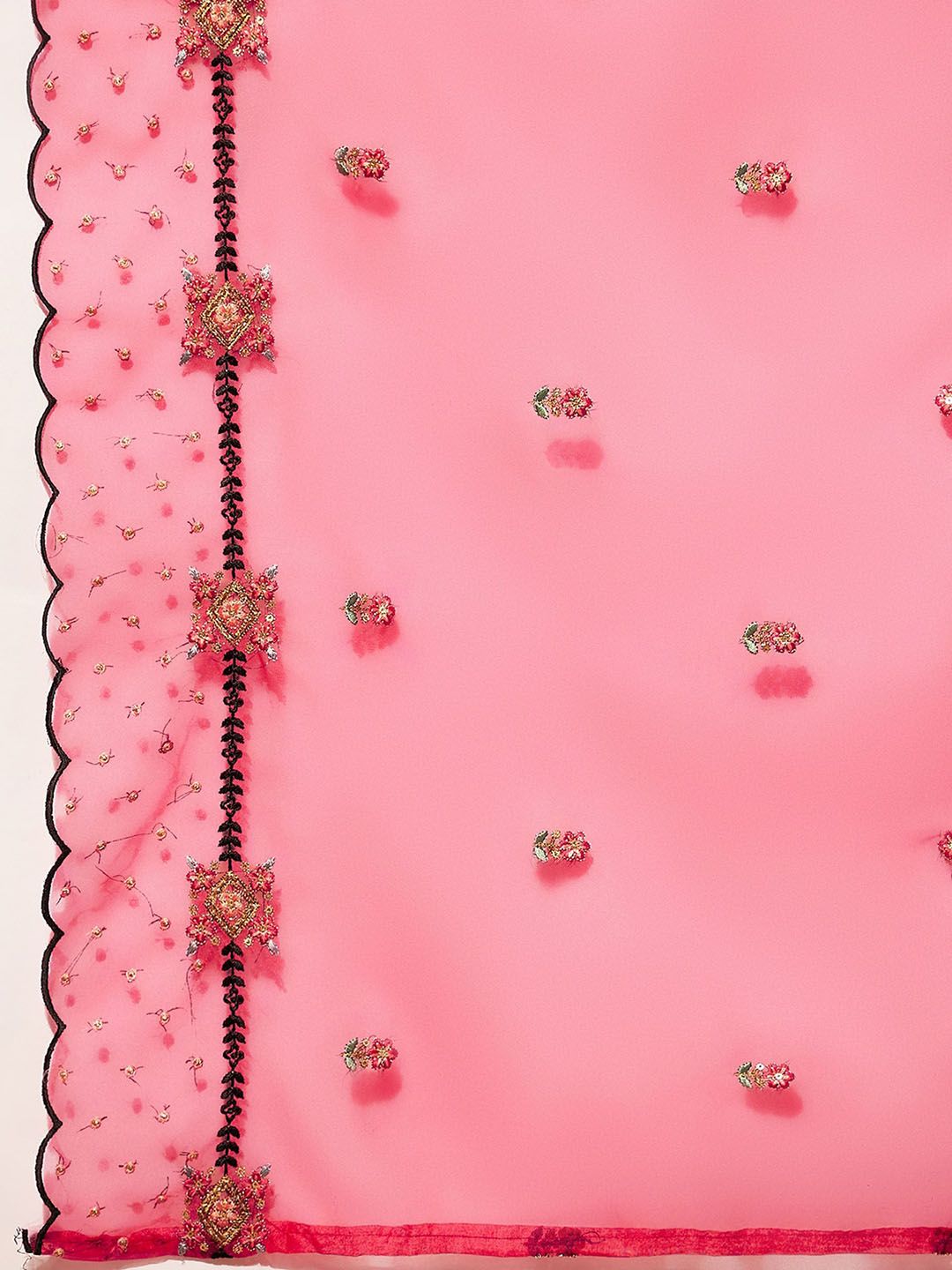 Black, pink & gold embroidered kurta with trousers & dupatta