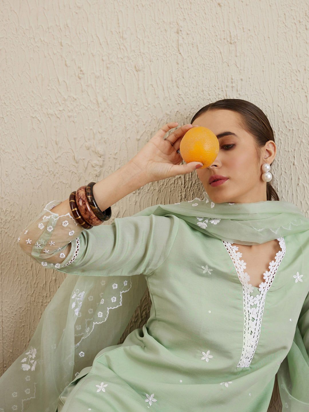Dhiyona IE Floral Embroidered Regular Thread Work Kurta with Trousers & Dupatta