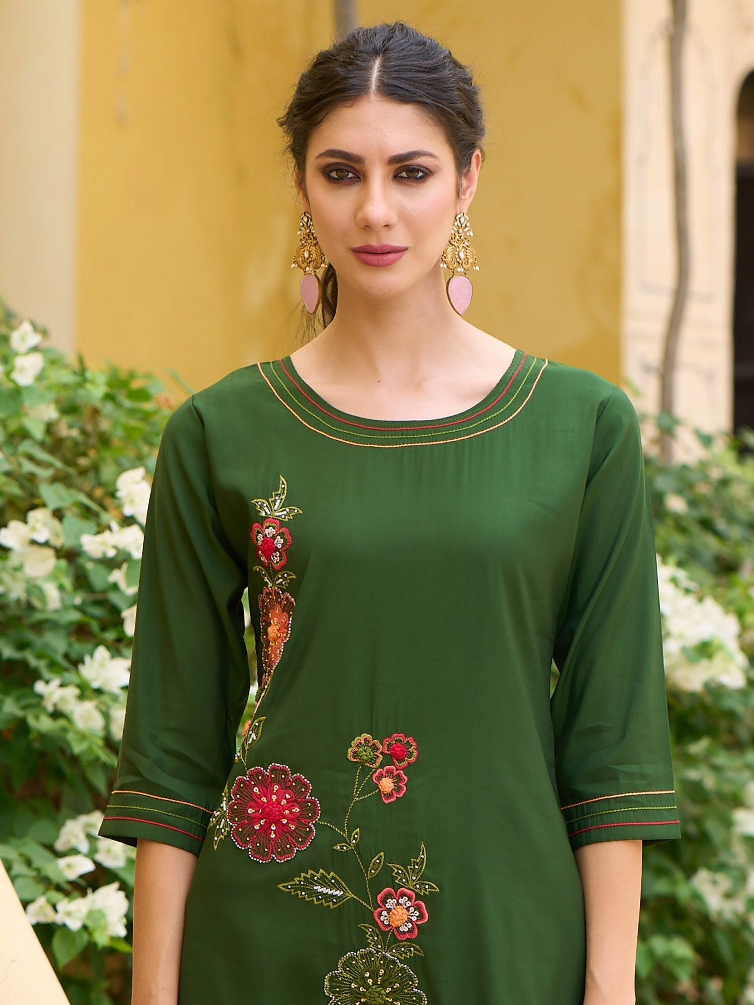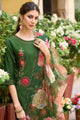 Green embroidered Kurta with Trousers with dupatta