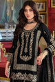 Black and gold toned embroidered kurta with palazzos & dupatta