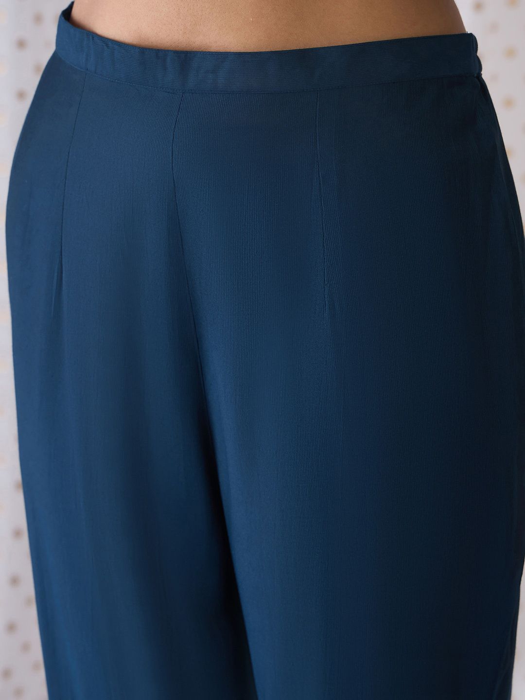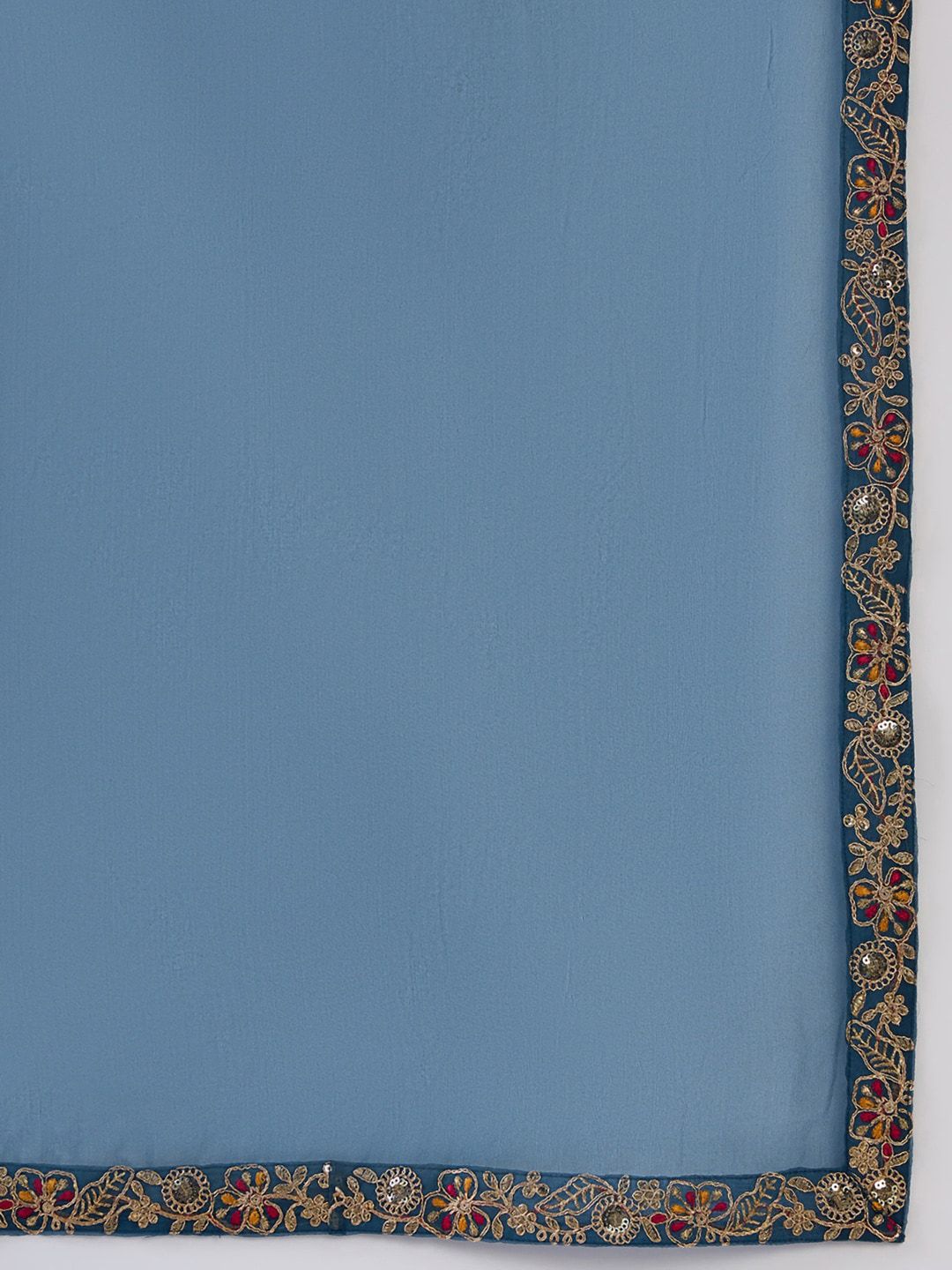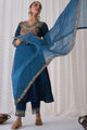 Dhiyona IE Floral Embroidered Round Neck Liva Straight Kurta with Trousers & Dupatta