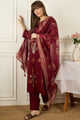 Dhiyona IE Floral Embroidered Round Neck Regular Straight Kurta With Trousers & Dupatta