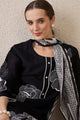 Dhiyona IE Floral Embroidered Round Neck Sequinned Linen Kurta With Trousers & Dupatta