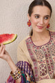 Beige, purple and green embroidered kurta with trousers and dupatta