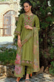 Olive green , pink and white embroidered kurta with trousers and dupatta