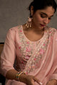 Peach, pink and green embroidered kurta with trousers & dupatta
