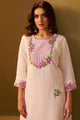 Off White and pink embroidered tunic, has a round-neck and three-quarter sleeves, secured with slip on closure