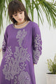 Purple and grey embroidered tunic, has a round-neck and three-quarter sleeves, secured with slip on closure