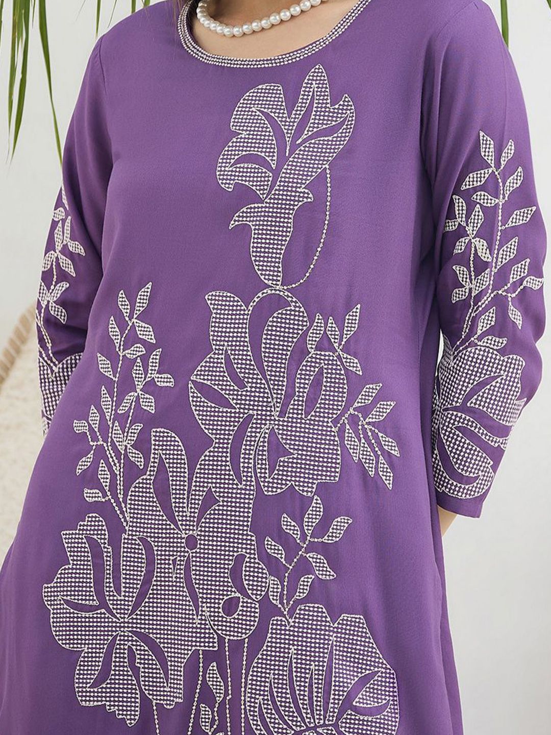 Dhiyona IE Floral Embroidered Round Neck Tunic & Trousers