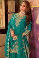 Teal and gold-toned embroidered kurta with palazzos with dupatta