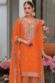 Orange, blue and green embroidered kurta with palazzos with dupatta