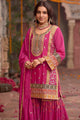 Dhiyona IE Floral Embroidered Sequinned Chinon Straight Kurta With Sharara & Dupatta