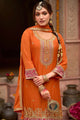 Orange, pink and god-toned embroidered kurta with trousers with dupatta
