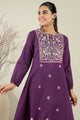 Purple, white & pink embroidered kurta with trousers