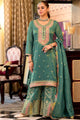 Teal, pink and gold-toned embroidered kurta with palazzos with dupatta