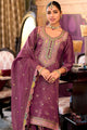 mauve, pink and gold-toned embroidered kurta with palazzos with dupatta