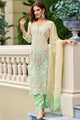 Green, red and white embroidered kurta with trousers and dupatta