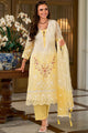 Lavender, yellow and white embroidered kurta with trousers and dupatta