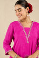 Pink and silver-toned embroidered kurta with trousers