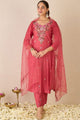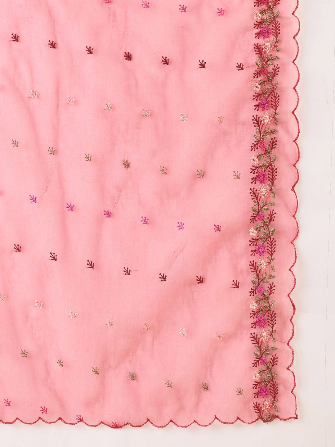 Dhiyona IE Floral Embroidered Stone & Beads Work V Neck Kurta With Trousers & Dupatta