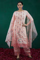 Peach-coloured & red embroidered Kurta with Trousers & dupatta