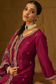 Maroon & gold toned embroidered kurta with trousers & dupatta