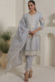 Dhiyona IE Floral Embroidered Straight Pure Cotton Kurta With Trousers & Dupatta