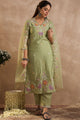Dhiyona IE Floral Embroidered Straight Thread Work Kurta With Trousers & Dupatta
