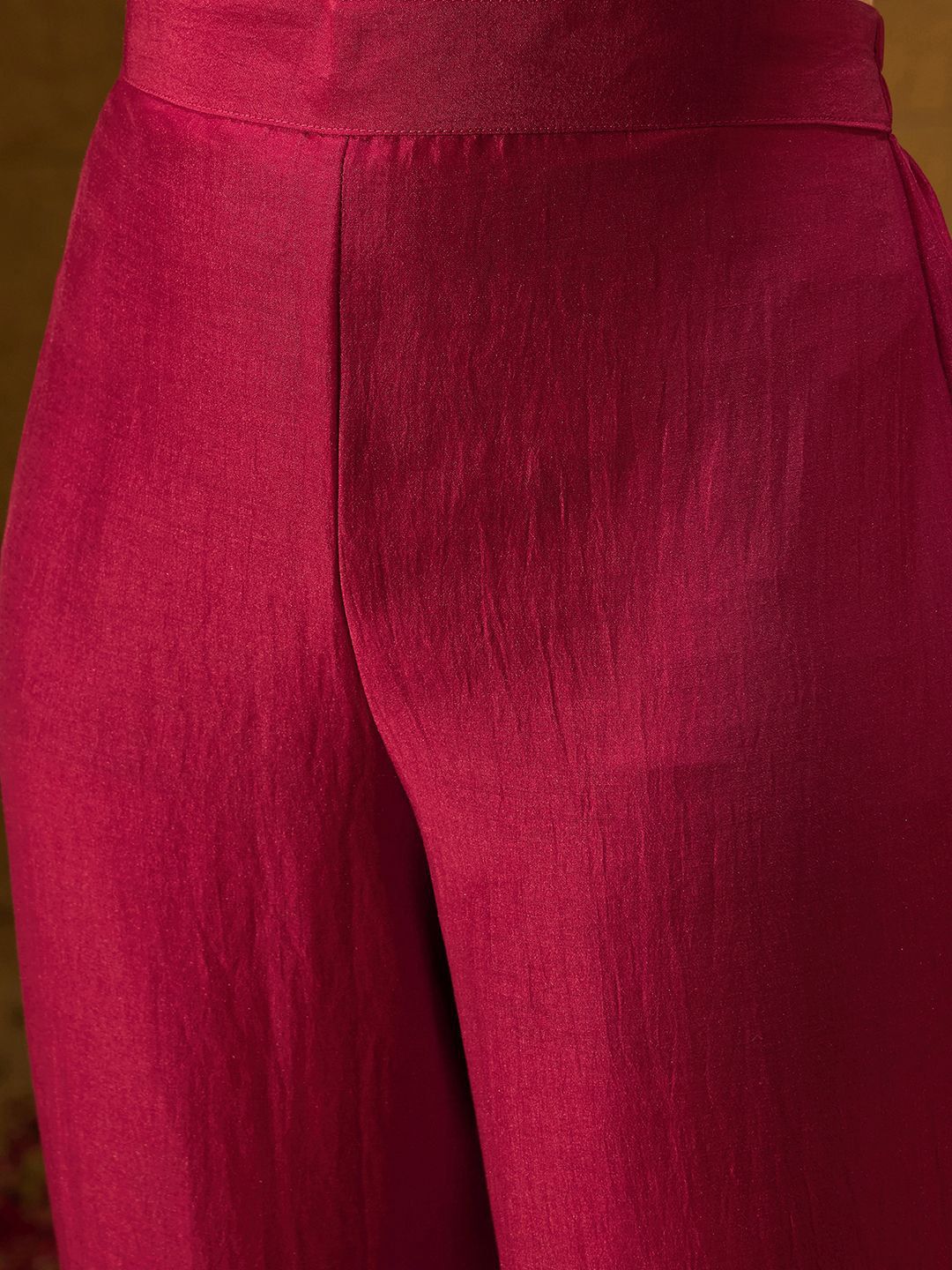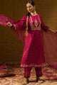Maroon, gold toned & pink embroidered Kurta with Trousers & dupatta
