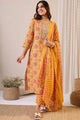 Dhiyona IE Floral Embroidered Straight Zari Work Kurta With Trousers & Dupatta