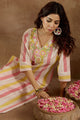 Dhiyona IE Floral Embroidered Striped Pure Cotton V-Neck Straight Kurta With Trousers