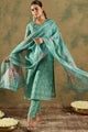 Dhiyona IE Floral Embroidered Thread Work Chanderi Silk Kurta with Trousers & Dupatta