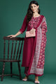 Burgundy embroidered Kurta with Palazzos with dupatta