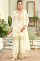 White and gold-toned embroidered kurta with palazzos with dupatta