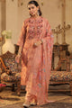 Peach, orange and maroon embroidered kurta with trousers with dupatta