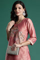 Peach-coloured embroidered Kurta with Trousers