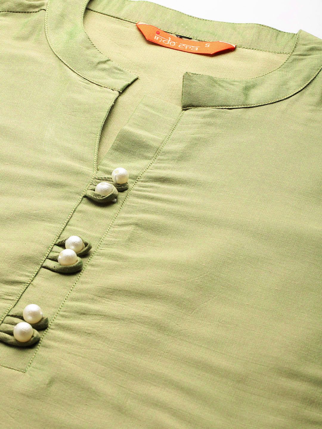 Olive green embroidered Kurta with Trousers