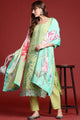 Dhiyona IE Floral Embroidered Thread Work Kurta With Trousers & Dupatta