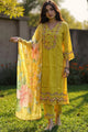 Mustard yellow & pink embroidered Kurta with Trousers with dupatta