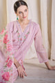 Lavender, pink & green embroidered kurta with trousers & dupatta