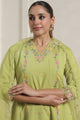 Green, pink and yellow embroidered kurta & trouser with dupatta