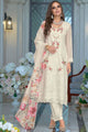 White, green & pink embroidered Kurta with Trousers & Dupatta