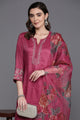 Dhiyona IE Floral Embroidered Thread Work Kurta with Trousers & Dupatta