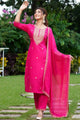 Dhiyona IE Floral Embroidered Thread Work Kurta with Trousers & Dupatta