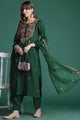 Green embroidered Kurta with Trousers with dupatta